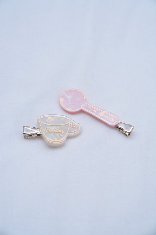 予約販売期間中に〈トップス・ボトムス・カーディガン〉の3点セットをご購入いただいたお客様へ、前髪クリップ2種セットのノベルティを1点プレゼントいたします。