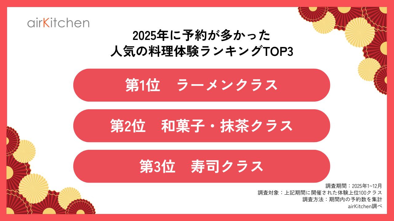 【2025年総まとめ】料理体験プラットフォームairKitchenで人気だった料理体験ランキングTOP3!