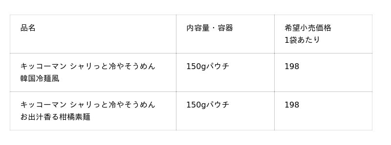 キッコーマン食品株式会社は、2月2日に、凍らせてシャリシャリ食感が楽しめるめんつゆ「キッコーマン シャリっと冷やそうめん」シリーズを全国で新発売します。「韓国冷麺風」と「お出汁香る柑橘素麺」の2種類です。