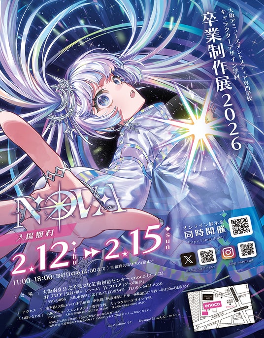 大阪アミューズメントメディア専門学校キャラクターデザイン学科、2年間の集大成である卒業制作展「NOVA(ノヴァ)」を2月12日(木)~15日(日)開催します。
