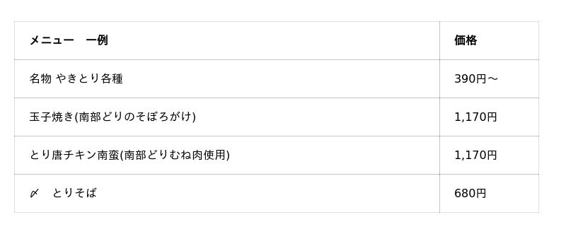 名物の焼鳥には岩手県産”南部どり”を使用。旨味とコクが豊かで、柔らかな食感が特徴です。