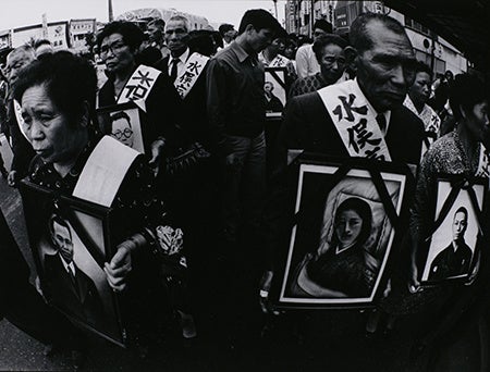 W. ユージン・スミス 《無題(認定患者の遺影を持つ親族たち) 》〈水俣〉より 1972年 東京都写真美術館蔵 (C)Aileen Mioko Smith