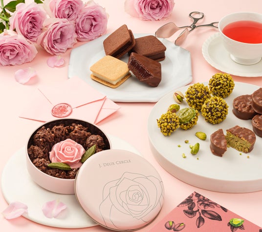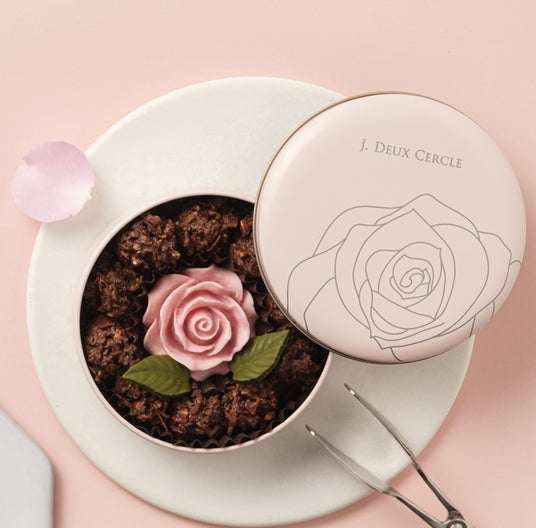 フランス産チョコレートを使用した甘酸っぱい味わいが特徴のローズ型のチョコレートと、ラングドシャを練りこんだチョコクランチが周りを囲んだ、バレンタインだけの特別なギフトです。