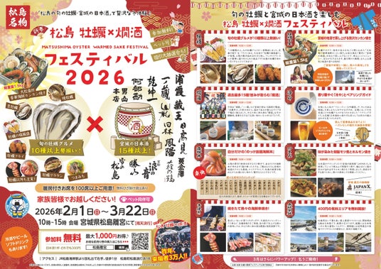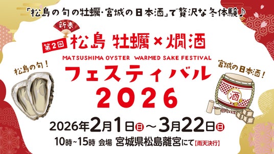 松島 牡蠣×燗酒フェスティバル実行委員会は日本三景 松島(会場:宮城県松島離宮)にて、2月1日(日)より「松島 牡蠣×燗酒フェスティバル」を開催します。