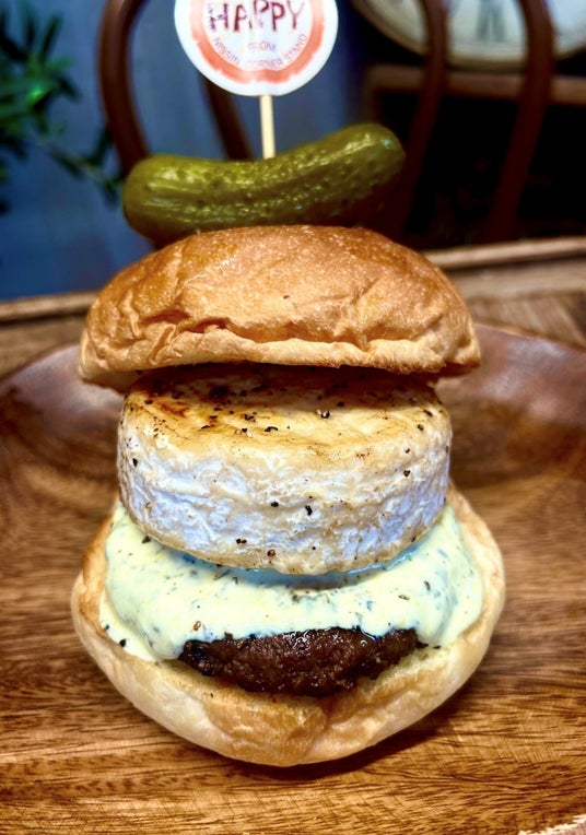 市場ではなかなか見ないカマンベールチーズを使った希少性高いビーフハンバーガーです。カマンベールチーズを整形することなく丸々使用することで旨味を逃がさず、大自然の恵みを想起させるその濃厚な乳の味わいが黒毛和牛100%のパテと交じり合い、港区系レストランを彷彿させる牛のプレミアムを引き出します。インターナショナルスーパーだからこそ栄えるグルメです。