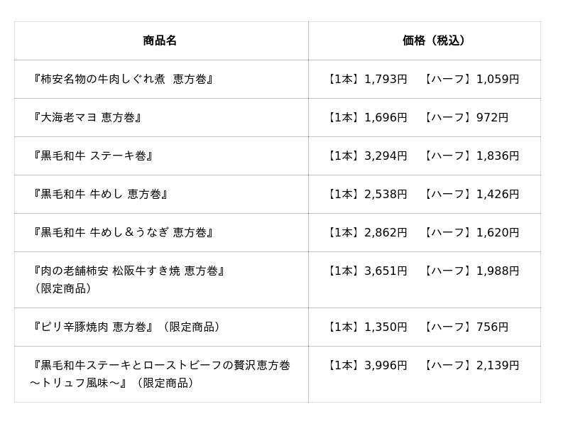 牛めしや大海老マヨを丸ごと具材にした柿安ダイニングならではの恵方巻