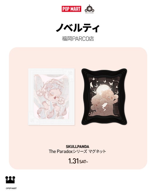 福岡PARCO(福岡県福岡市中央区天神)では、世界のポップカルチャーをリードする、国際的なポップトイ ブランド「POP MART(ポップマート)」を1月31日(土)にグランドオープンいたします。九州初となるオープンを記念し、限定商品やノベルティの展開に加え、バレンタインデーに合わせた特別仕様のショッピングバッグチャームをご用意しております。