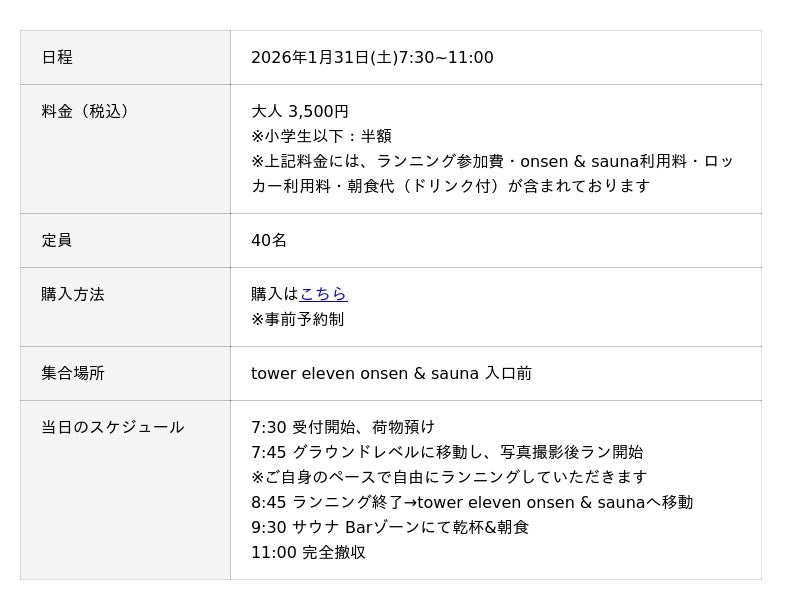 1/31(土)「Morning Run & Sauna」を開催!エスコンフィールド内をランニングして、tower eleven onsen & saunaで最高のととのい体験をしよう!