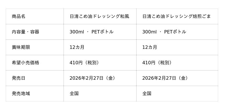 日清オイリオグループ株式会社(社長:久野 貴久)は、「日清こめ油ドレッシング和風」と「日清こめ油ドレッシング焙煎ごま」を発売します。