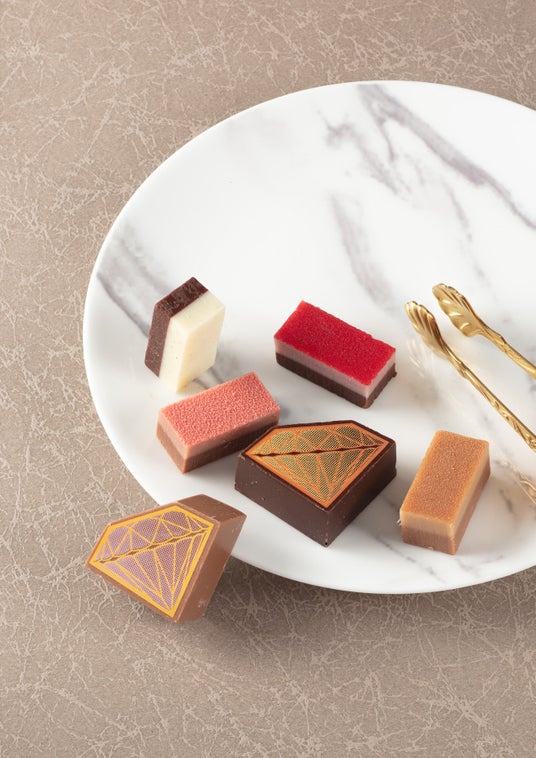 生チョコレート4種とダイヤモンドショコラ2種の贅沢で宝石のような一箱。