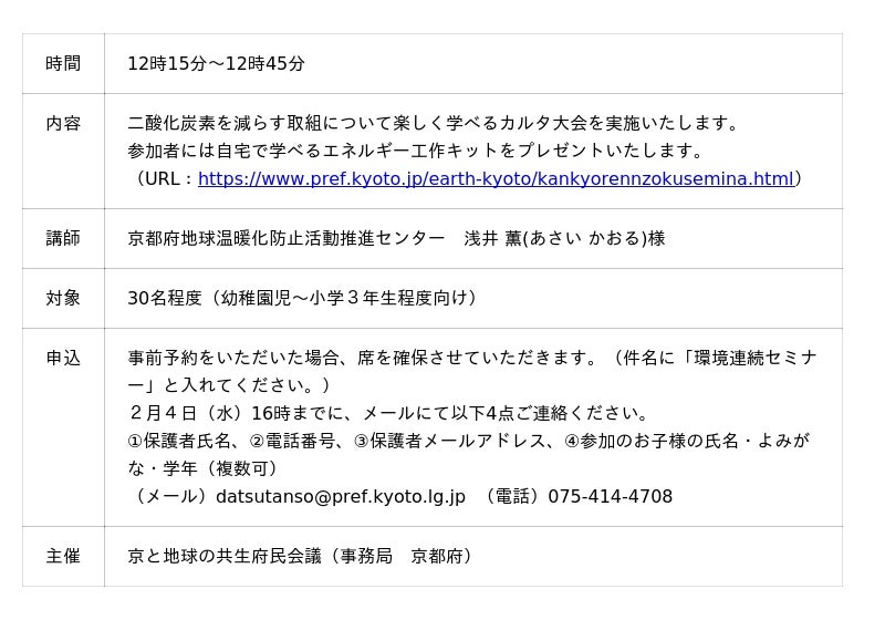 ・京と地球(アース)の共生府民会議 第30回環境連続セミナー~カルタで学ぼう地球温暖化~