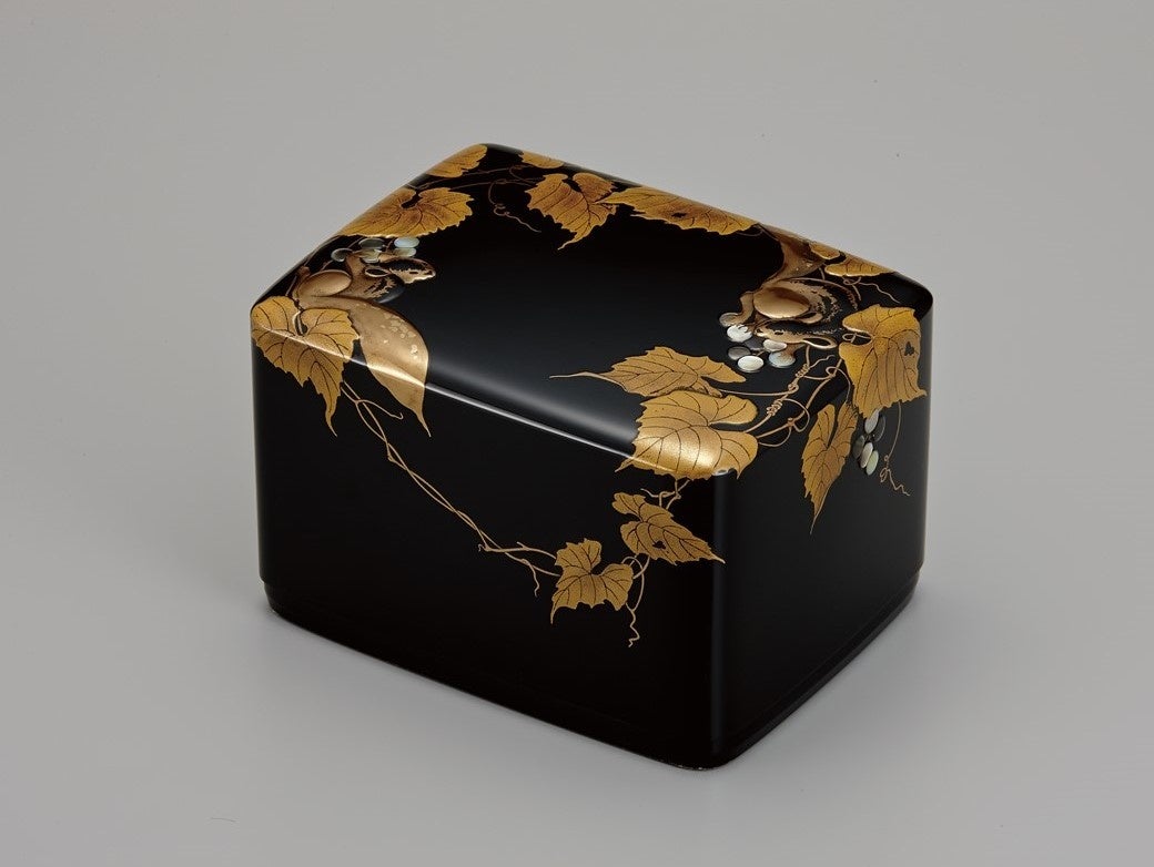 ・蒔絵 中野孝一《栗鼠に葡萄文蒔絵箱》