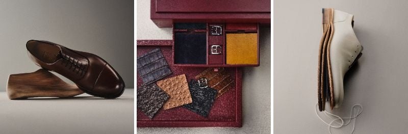 カーフ、スエード、プレシャススキンなど多彩なマテリアルからアッパー素材をお選びいただけるほか、ダブルモンクストラップやステッチ入りトゥキャップのオックスフォードなど、通常のコレクションでは登場しない特別なモデルもオーダーが可能。