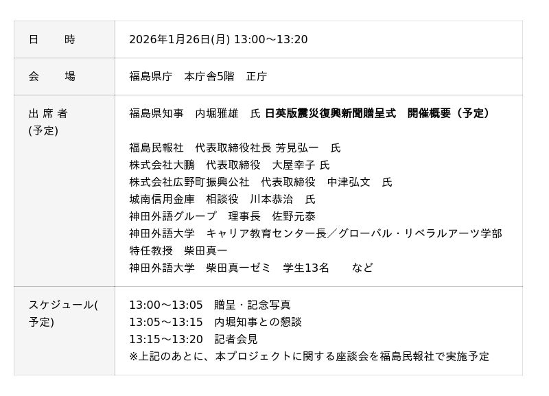日英版震災復興新聞贈呈式 開催概要(予定)