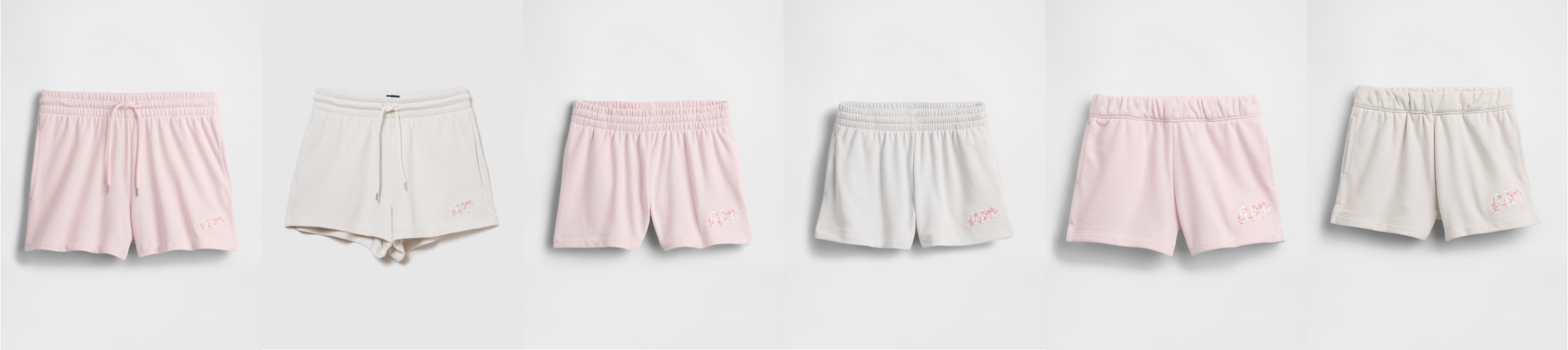 - スウェットショートパンツ (Women’s 3,990円 / Girls 3,490円 / Toddler Girls 3,490円): ウエストゴムで履き心地のよいGAPロゴの刺繍入りショーツ