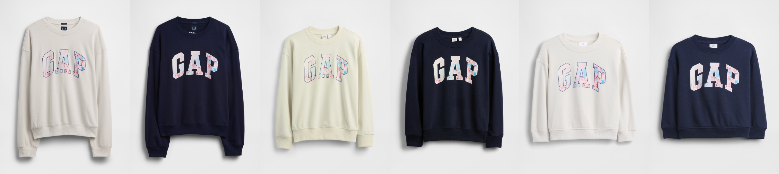 GapのアイコニックなスウェットやTシャツがベビーからアダルトまでラインナップ