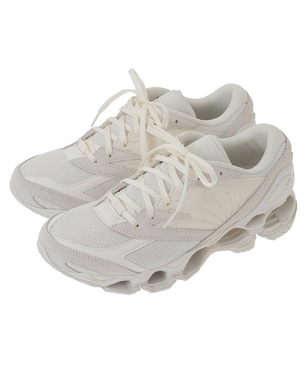 ミズノの代表的なモデル「WAVE PROPHECY」をベースに、CLANEオリジナルのホワイトトーンでまとめたスニーカー。クリーンなホワイトの世界観に、ブラックできゃしゃに施したCLANEロゴが映えます。