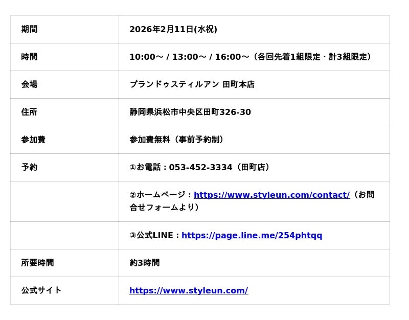静岡県浜松市でブライダル事業を展開する株式会社スティルアン(本社:静岡県浜松市中央区田町326-30、代表取締役社長:大石 奉樹)は、2026年2月11日(水祝)にヘアメイク付き試着会を開催いたします。