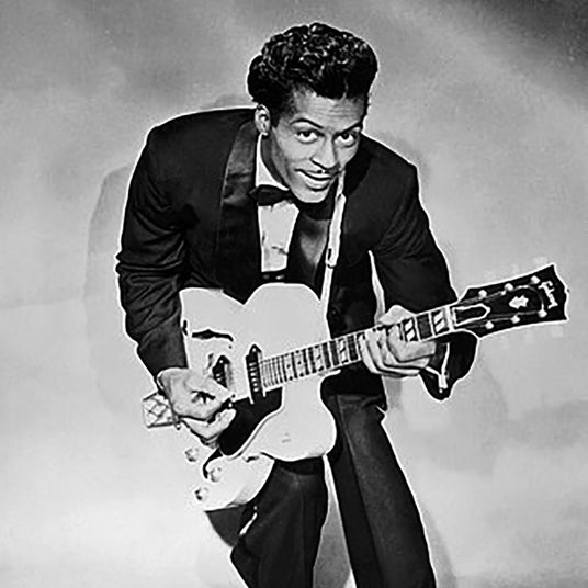 アメリカ合衆国・ミズーリ州出身。ロックンロール創始者の代表格であり、ポピュラー・ミュージックに絶大な影響を与えたチャック・ベリー氏は、1950年代にギター主導のビートとストーリーテリング的な歌詞を融合させ、ロックンロールの原型を作り上げました。メロディのみならず若者の共感を呼ぶ歌詞が、それまでの音楽とは一線を画し、若者中心の大衆音楽という新しい潮流を築き上げました。当時のアメリカでは、黒人アーティストがラジオや白人観客の前で演奏することは困難でしたが、同氏は人種の壁を越えて人気を博した初の黒人ロックンローラーです。ビートルズ、ローリング・ストーンズ、ジミ・ヘンドリックス、ブルース・スプリングスティーンなど、多数のレジェンドアーティストが同氏の曲をカバーし、影響を受けたと公言しています。代表作「ジョニー・B・グッド」は、1977年にアメリカ航空宇宙局(NASA)の宇宙探査機〈ボイジャー1号〉に搭載されたゴールデンレコードに収録され、人類の文化の象徴として宇宙へと旅立ちました。