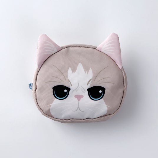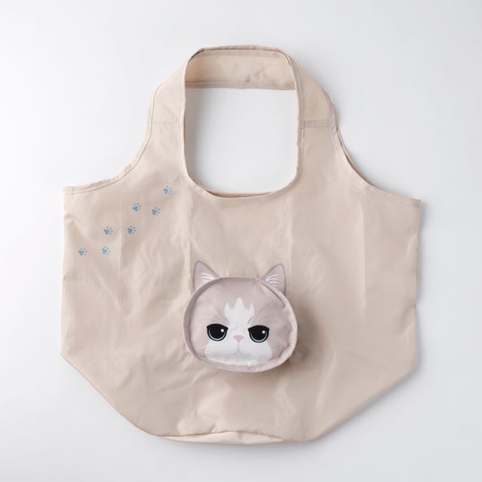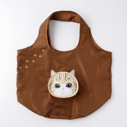 ふにっとした触り心地の耳がポイント。猫顔ポケットに本体を収納でき、折りたたむと愛らしい猫の顔に。省スペースで持ち運べるため、サブバッグとしてバッグに忍ばせておくのにもおすすめです。使うたびに思わず笑顔になる、猫好きにはたまらないアイテムです。
