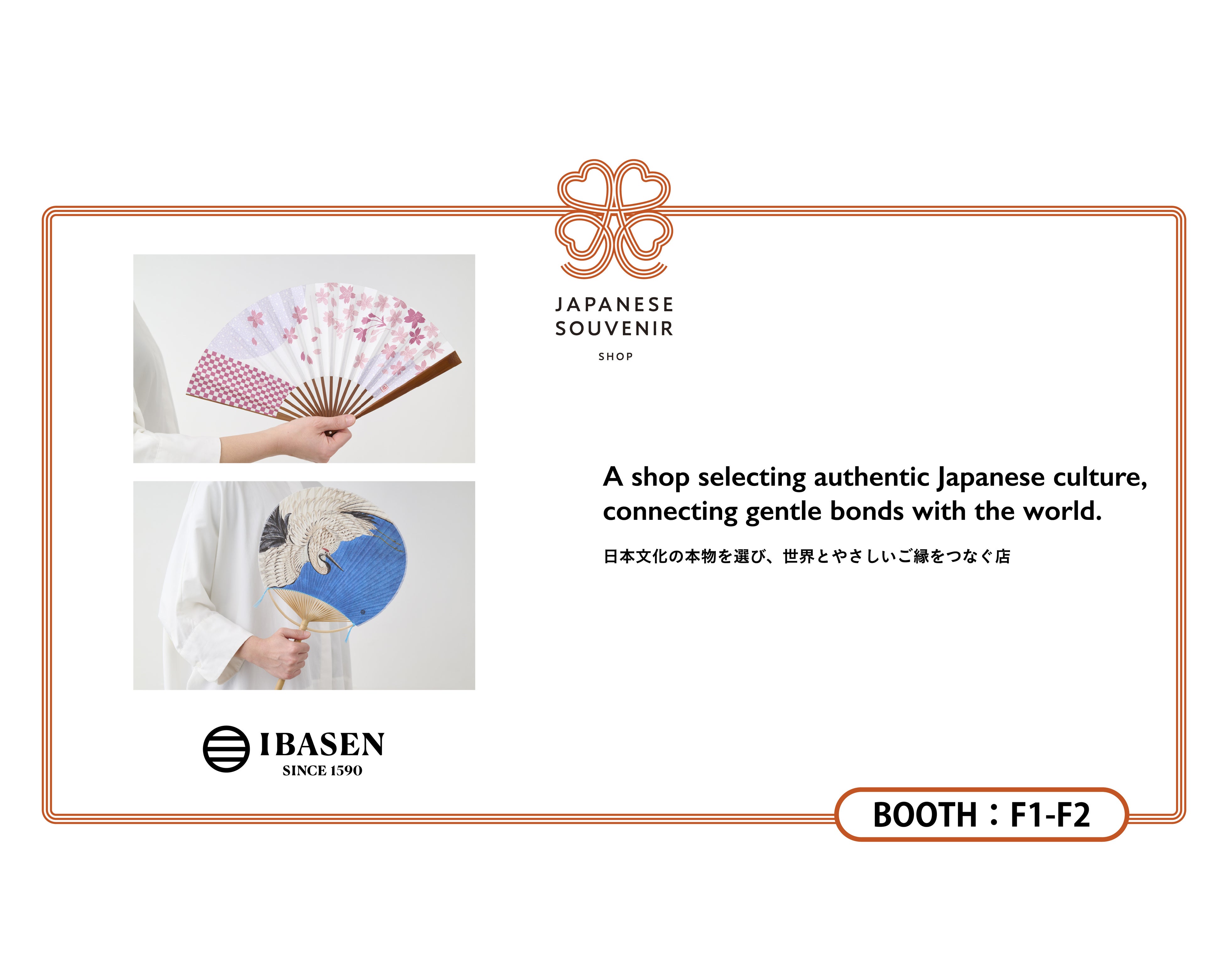 「Japanese souvenir shop」は「日本文化の本物を選び、世界とやさしいご縁をつなぐ店」をキャッチコピーに、日本各地の伝統や文化に根ざした逸品を海外へ紹介することを目的としたセレクトショップ型の展示・販売企画です。伊場仙は本企画の趣旨に賛同し、江戸時代より受け継がれてきた扇子・団扇の文化と技を発信いたします。