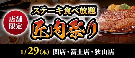 【ステーキのあさくま】極上ステーキが食べ放題!『匠肉祭り』1月29日(木)あさくま関店、富士店、狭山店の3店舗で同時開催!― 小学生未満は無料