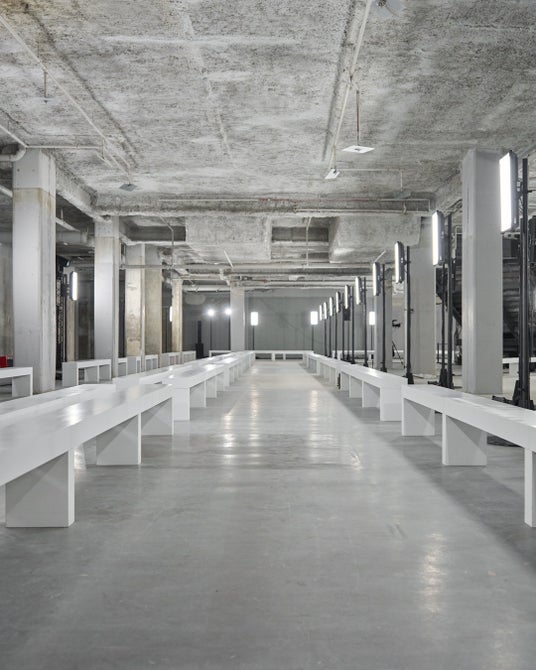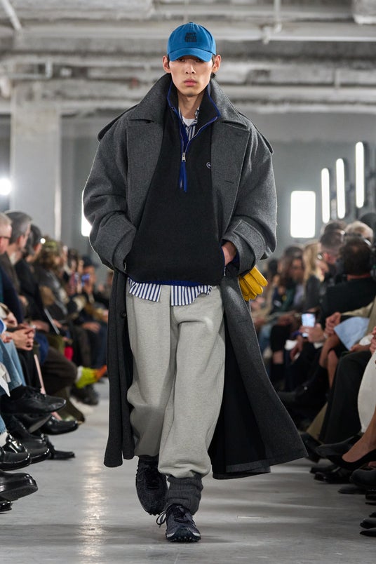 Ami Parisの2026年秋冬ショーは、シャンゼリゼ通りに建つオスマン様式の建物内に設えられた、インダストリアルなムードが色濃く漂う無機質な空間で開催されました。ロケーションの選定は意図的なもので、装飾を削ぎ落としたミニマルなセッティングにより、コレクションそのものに意識が集中する構成となっています。ニュートラルで控えめな空間は、主張しすぎることなく、クリアで妨げのない背景として機能しました。