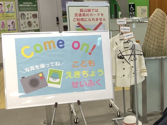 お子さま用の駅長制服を着用して写真撮影ができます。