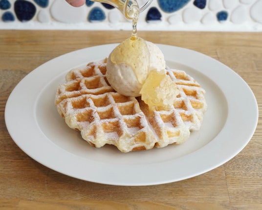 ムーの生地を使用した「ムッフル」に、旬を味わう自家製ジェラートと贅沢なコムハニーを添えて。