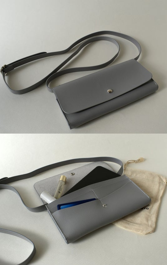 通常メガネパースサイズより少しサイズを大きくし、メガネ以外にもスマホやちょっとしたメイクグッズなども入るサイズです。