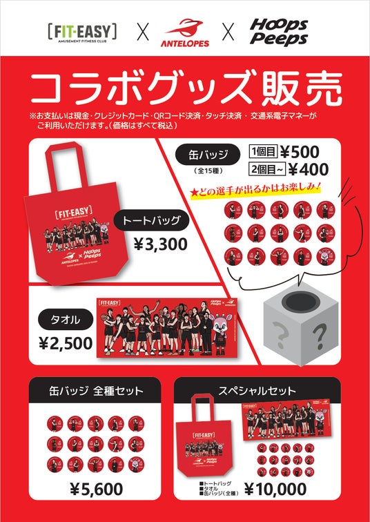 1.FIT-EASY×ANTELOPES×HoopsPeeps コラボグッズ会場販売 2024年12月に開催した豊田大会に続きアンテロープスとのコラボグッズを当社の特設ブースにて販売いたします。