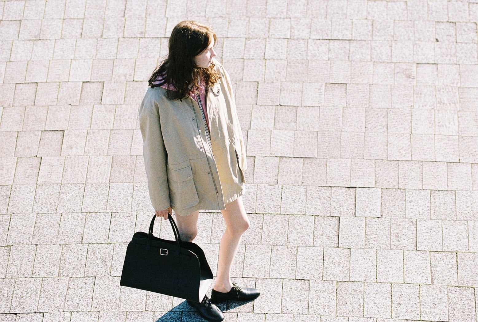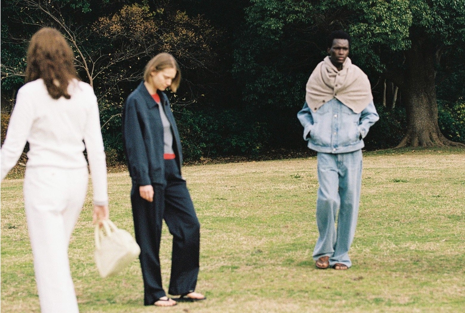 繰り返される通勤風景を舞台に、私的な自分から社会的な役割へと移る直前の、曖昧で繊細な感情の揺らぎを描きました。郊外から都心へ向かう途中、駅の入口にある鏡の前で、無意識に身だしなみを整える一瞬。そこには、まだ完成しきらない、ニュートラルな状態の美しさが映し出されています。緩く結ばれたネクタイや、風に揺れるコートの裾といった小さなディテールが、言葉にされない感情や、その日一日への向き合い方を静かに物語ります。
