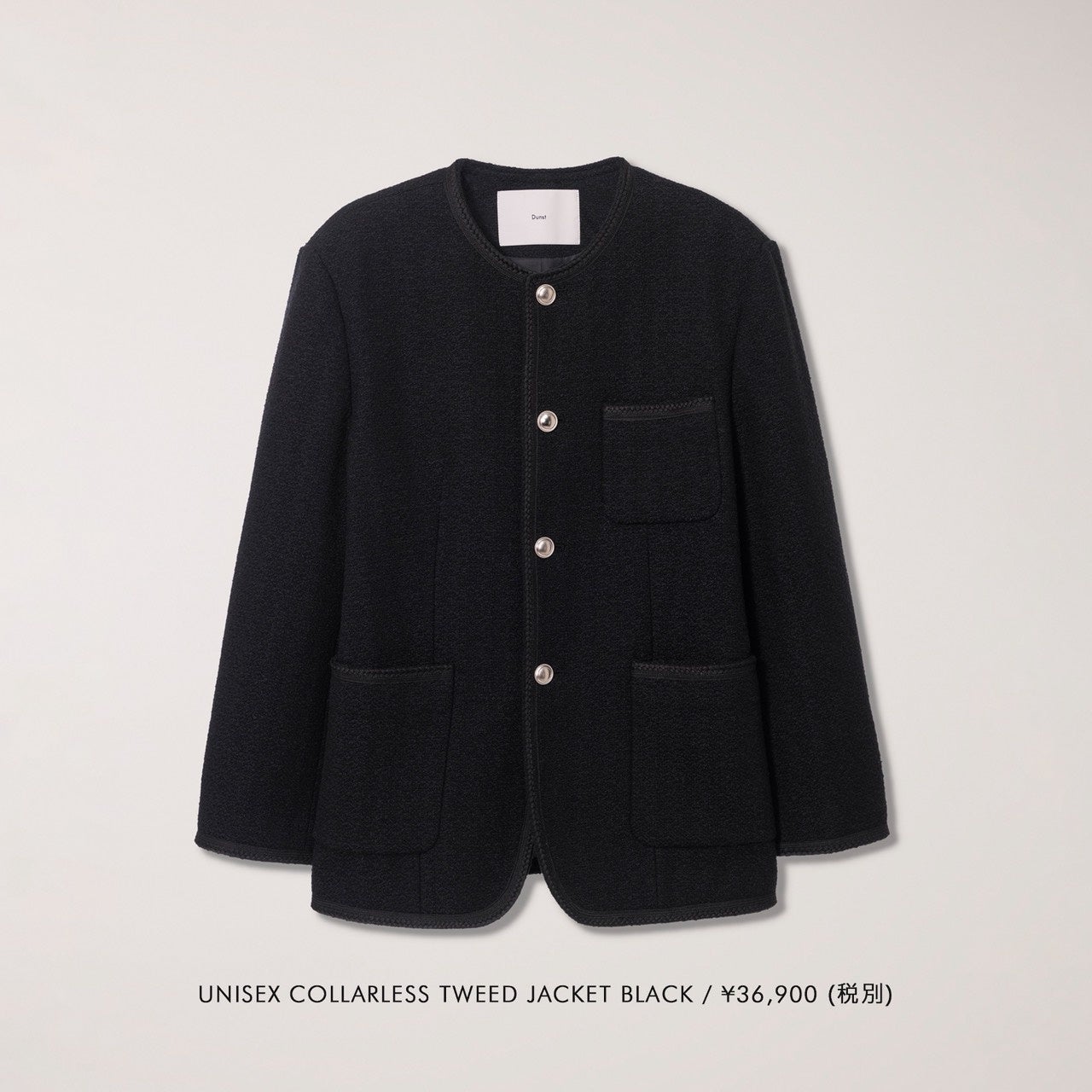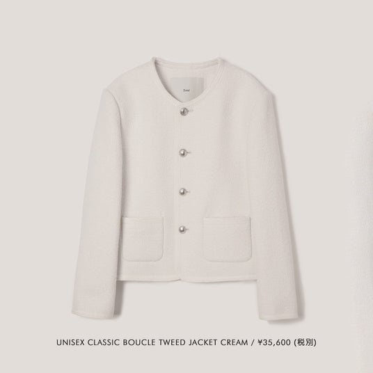 1. UNISEX COLLARLESS TWEED JACKET / 40,590円(税込)