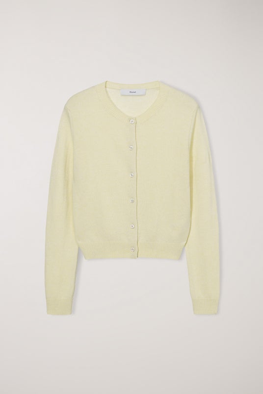 メリノウール×カシミヤ混の滑らかなニットカーディガン。クルーネックとベーシックなシルエットが、クリーンでクラシックな印象を与えます。丁寧な仕上げとミニマルなロゴ刺繍が完成度を高めます。
