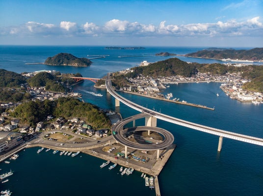 熊本県の南西部に位置し、県の中心地とは大きな5つの橋でつながっています。