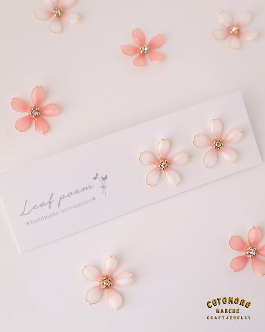 ■どれひとつとして同じものがない、1本のワイヤーから作る桜のアクセサリー毎年期間限定で発売される桜デザイン。ファッションの中でも定番化しやすいアクセサリーですが、leafpoemさんでは「四季」を感じられるアクセサリーを提案しているんです。花びらの自然なグラデーションも素敵ですよね。