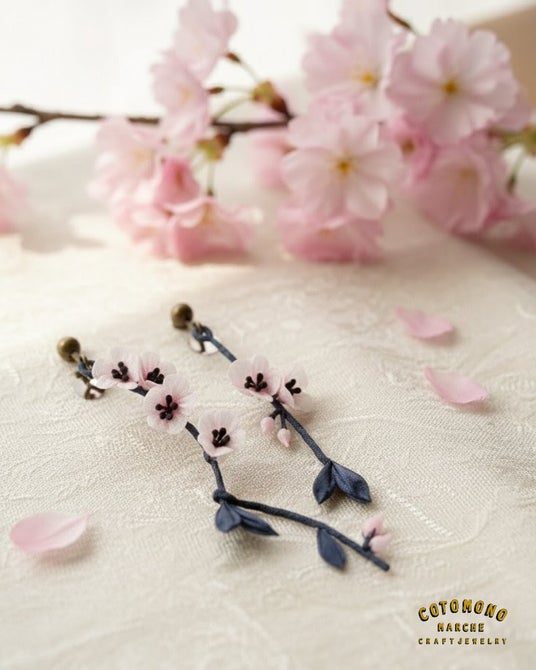開花している桜、咲こうとしている蕾、お花見にもつけていきたいアクセサリーですね。