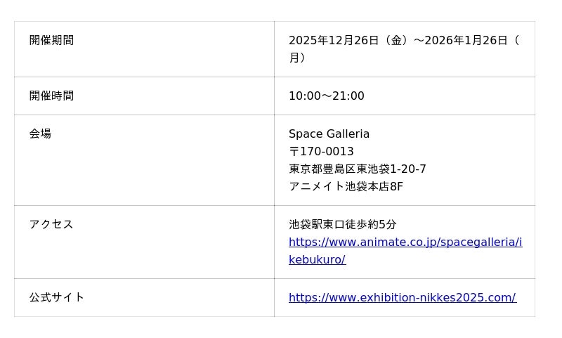 「NIKKE 2nd Exhibition アーク三大企業博覧会 BIG THREE IN THE ARK」:https://www.exhibition-nikkes2025.com/
