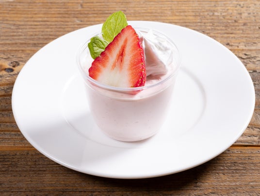 晴苺のおいしさをギュッと詰め込んだなめらか食感のババロア。懐かしさを感じる、やさしい味わいが特徴です。上に乗っている生クリームを、フレッシュな果肉とともに召し上がれ。