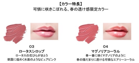 KiSSで人気のリップラインが描きやすい超極細※リップ、リップアローシリーズの高保湿タイプ「リップアロー グロウ」から、春の訪れを告げる花々と光をイメージした、透明感あふれる限定色が登場!