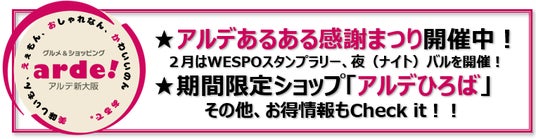 <<アルデ新大阪>>アルデあるある感謝まつり開催中!2月はWESPOスタンプラリー、夜(ナイト)バルを開催!