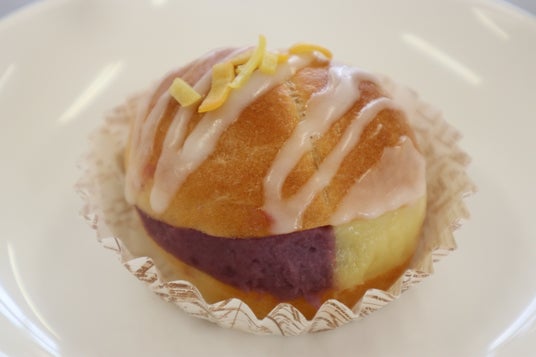 さつまいも酵母で作ったパンに、無農薬で育てたさつまいもと江田島産レモンを使用。パンの上にアイシングとレモンの皮を乗せることで、甘さと酸味を楽しんでもらえます!