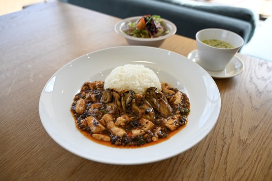 江田島牡蠣麻婆丼は年中ランチで提供しているほか、江田島市は牡蠣を目的に訪れる方が多いので、牡蠣フライや牡蠣のクラムチャウダーなども用意しています。また、お店は Sugos という名のとおり、『過ごす』ことに重点を置いています。食事をおいしく食べたい方も、癒しを求めて来られる方も、景色を楽しみながら、ゆったりとした時間をお過ごしください。