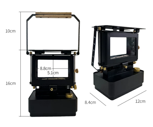 高さ16cm、重さ860gの軽量コンパクトなミニアイロンストーブ!今までより小さくなったけど、窓は大きく、しっかりとしたアイロンストーブです。