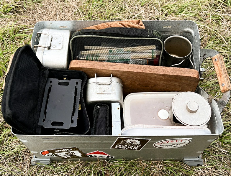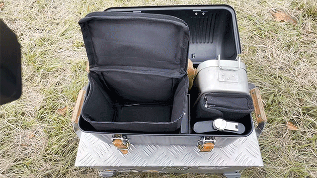 アウトドア用のバスケットやコンテナ、トランクカーゴなどにすっぽり収まるコンパクトさ。