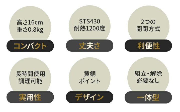 火を点けるときやメンテナンスなどに応じて開くことができるので便利です。