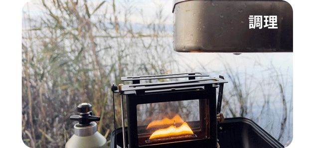 お湯を沸かしてコーヒをの飲んだり、メスティンで調理したりできます。