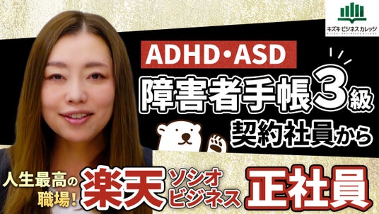 うつ・発達障害・適応障害等のビジネススクール、キズキビジネスカレッジ(KBC)が卒業生インタビューを公開!楽天グループの特例子会社への就職で、自己肯定感を劇的に回復させたキャリアの秘訣に迫ります。