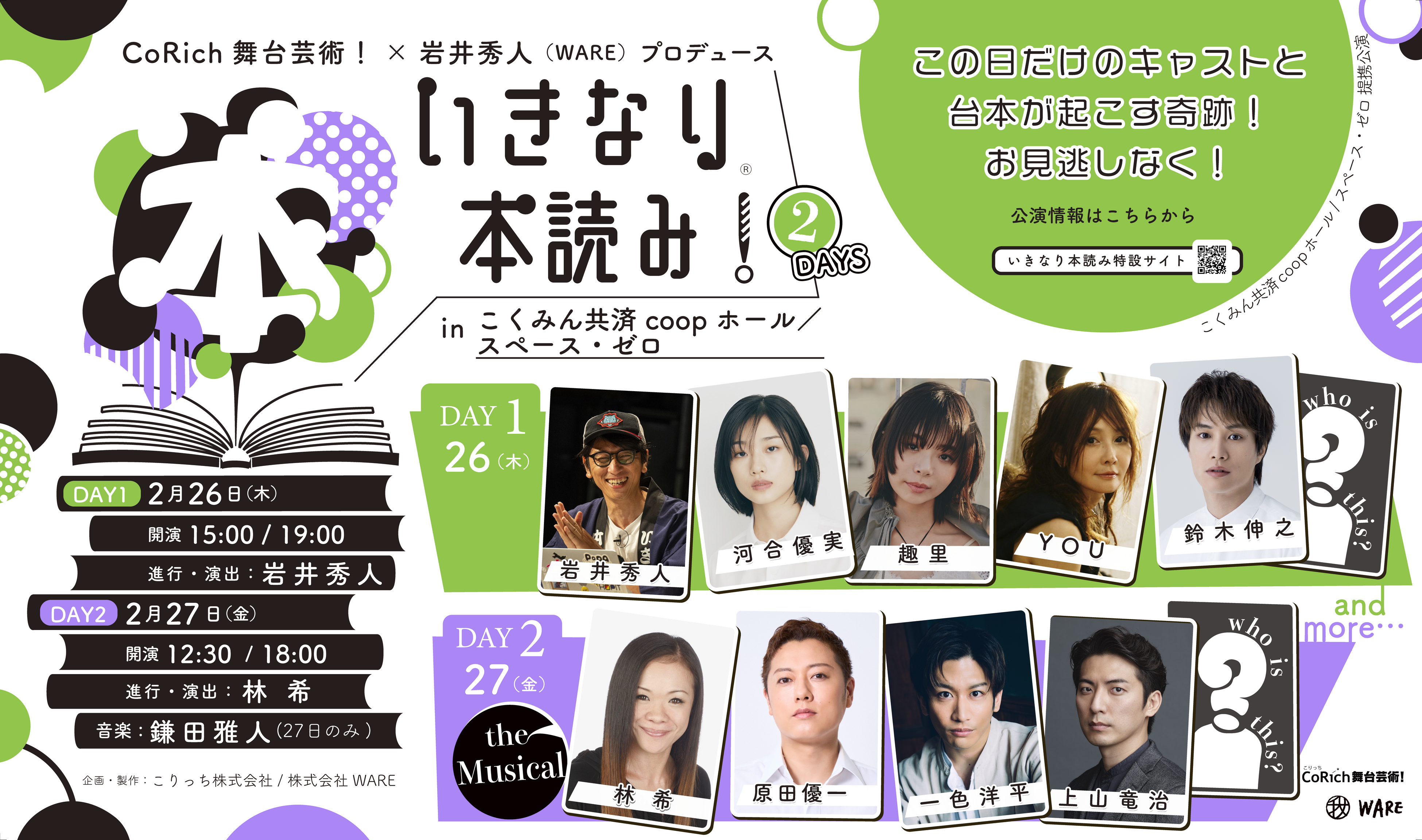 CoRich舞台芸術!× 株式会社WARE プロデュース!この日だけのキャストと台本が起こす奇跡「いきなり本読み!2DAYS」2026年2月26日・27日に開催決定!