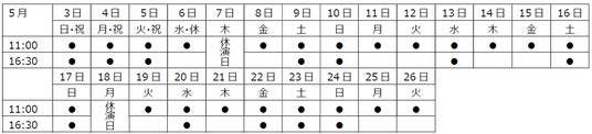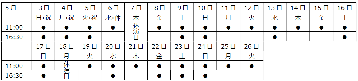※5月13日(水)11:00公演には学生団体様がいらっしゃいます。